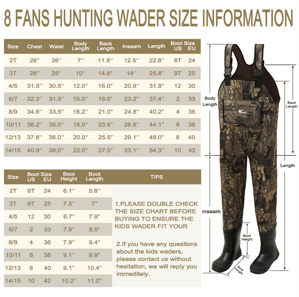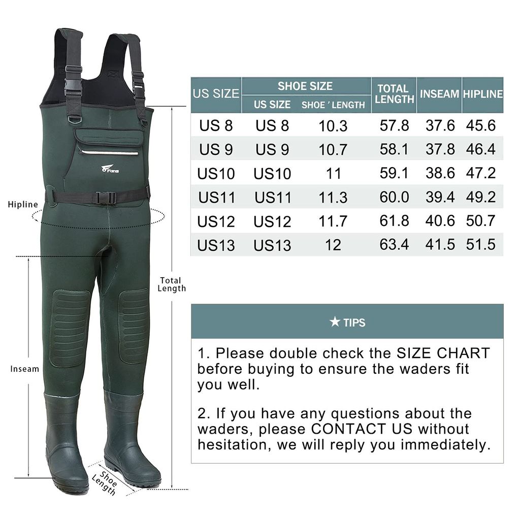 У стокингфут моделей размер «длина стопы» включает неопреновый носок. Для bootfoot ориентируйтесь на свой обычный размер обуви.